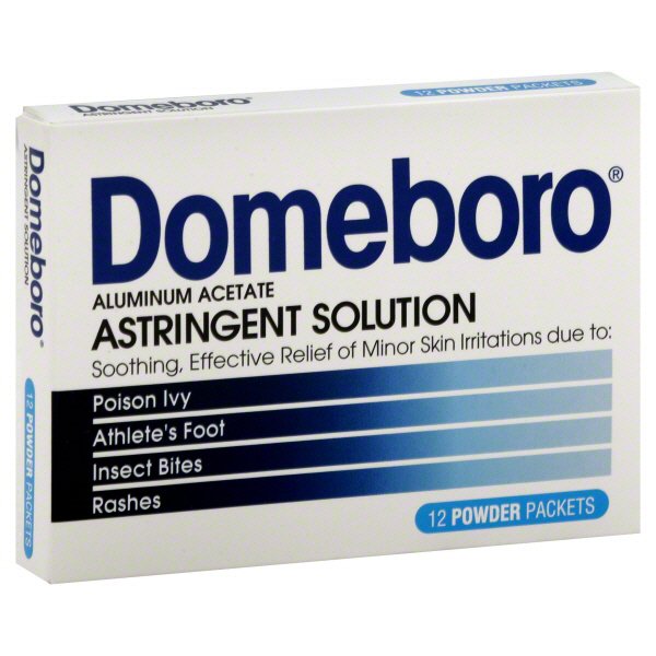 Domeboro medicated soak rash relief (burow's solution), 12 powder packets (pack of 2) 0.09 ounce (pack of 24) 4.6 out of 5 stars. $11.35 with subscribe & save discount. Contains hydrocortisone to reduce inflammation and itching. This is a mixture of 13 percent aluminum acetate. This versatile solution has a number of uses.